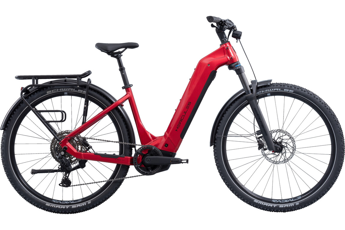 Hercules E-TrekkingAhogy a hagyományos trekking kerékpároknál, úgy az elektromos rásegítésű modelleknél is erős túlméretezést lehet tapasztalni a német gyártónál. Ez persze nem baj, sőt épp ez tette olyan naggyá a Herculest. Az elpusztíthatatlanság érzése ezeknél a kerékpároknál is megvan, ráadásul sok más márkához viszonyítva mindenképp elismerést érdemelnek azért, mert az elektromos csomagon sem spórolnak. Nagyon erős motorokat és nagy kapacitással rendelkező akkumulátorokat pakolnak a bringáikba, még belépő szinten is. Persze ezeknek a jó tulajdonságoknak ára van, de ha valaki veszi a fáradtságot arra, hogy részletesen átböngéssze a típusok adatlapját, úgy láthatja, hogy nem kínálják drágábban a technikát a konkurenciánál, csak nem gagyizzák azt el. A trapéz vázas kínálat némiképp eltér az alacsony átképésű sorozatétól.